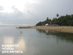 Сильные отливы, водоросли. Нет ветра. Нет заката. Санур один из немногих пляжей Бали где нет волн и можно спокойно плавать. Но есть водоросли возле берега.