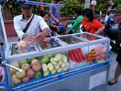 - Чищеные фрукты обычно 0 RUB = 10 THB за порцию, но порция от продавца к продавцу может быть очень разная.